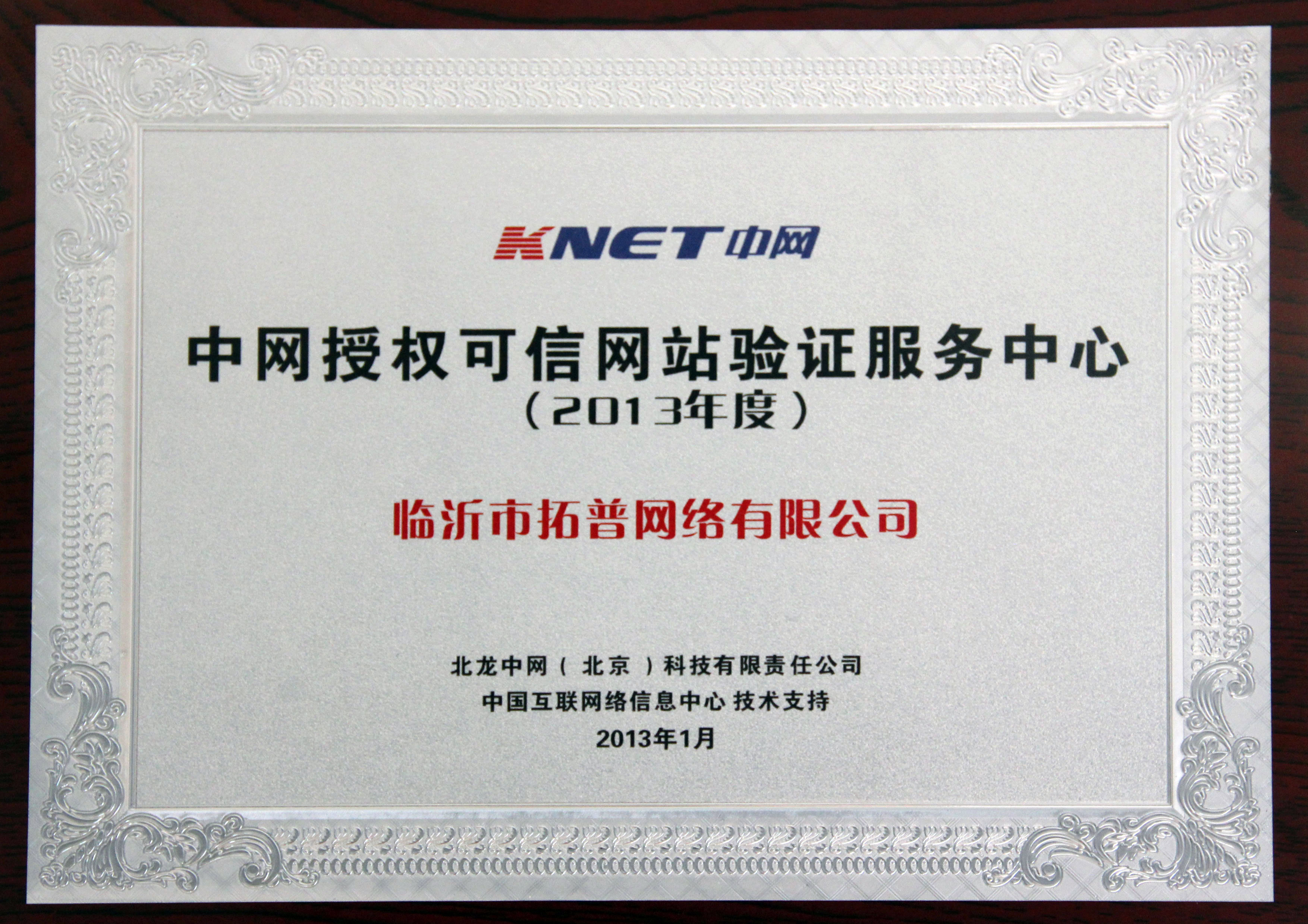 2013年度中網(wǎng)授權(quán)可信網(wǎng)站驗證服務(wù)中心