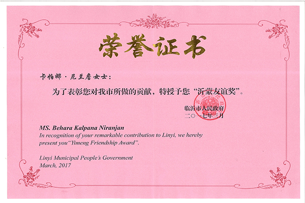 2017.3卡帕娜被授予“沂蒙友誼獎