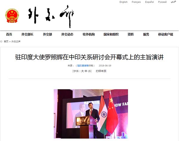 就在本月18日,中國駐印度使館在新德里與印度中國研究所、印度工商聯合會、印度外事記者協會、南亞外國記者俱樂部合作舉辦了題為“后武漢時期:中印關系愿景與速度”的研討會,探討中印關系未來發展前景。中國駐印度大使羅照輝、印度國家轉型委員會秘書長康德出席開幕式并發表主旨演講(點擊查看演講原文)。