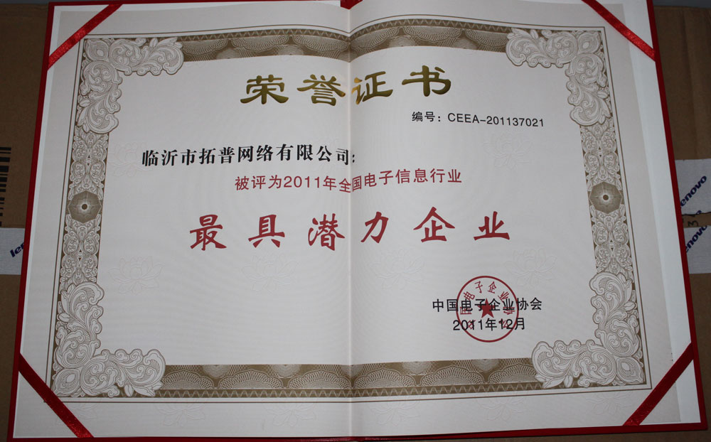 | 熱烈祝賀我公司被評為“2011年全國電子信息行業優秀企業”最具潛力企業 |