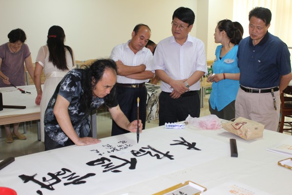 | 中國當代花鳥畫大師顏泉一行到拓普網絡公司揮毫潑墨 |