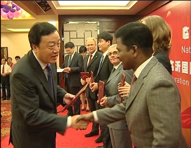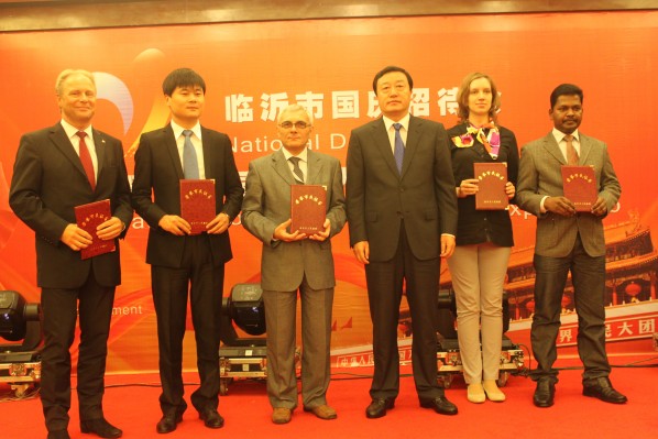 9月28日,臨沂市國慶招待會(huì)暨臨沂國際友人俱樂部成立大會(huì)在陶然居隆重舉行,市委書記、市人大常委會(huì)主任張少軍致辭,市委副書記、市長張務(wù)鋒為獲得“臨沂市榮譽(yù)市民”稱號(hào)的外國友人頒發(fā)證書,張少軍和張務(wù)鋒共同為臨沂國際友人俱樂部揭牌。林國華、李沂明、徐福田、孫豐剛、邊峰、王曉嫚、譚慶功等領(lǐng)導(dǎo)同志出席。 拓普網(wǎng)絡(luò)公司印度籍專家Babu先生榮膺“臨沂市榮譽(yù)市民”,這體現(xiàn)了拓普公司崇尚知識(shí)、尊重人才的做法,贏得了市委、市政府的肯定。 拓普網(wǎng)絡(luò)公司的印度籍專家以一場原汁原味的印巴風(fēng)情舞蹈為本次宴會(huì)拉開帷幕,贏得陣陣喝彩,各國友人也紛紛以自己的方式為本次活動(dòng)獻(xiàn)上精彩演出。 臨沂市拓普網(wǎng)絡(luò)有限公司公司歷來注重人才引進(jìn),大力實(shí)施“人才興企”戰(zhàn)略,去年至今,陸續(xù)從印度引入近40位高端人才,這在全省軟件行業(yè)當(dāng)中都是絕無僅有的,彰顯了公司敢為人先的魄力,以及走向國際化的決心。印度籍專家團(tuán)隊(duì)的到來,不僅增強(qiáng)了公司內(nèi)部的研發(fā)實(shí)力,也提升了企業(yè)的外在形象。