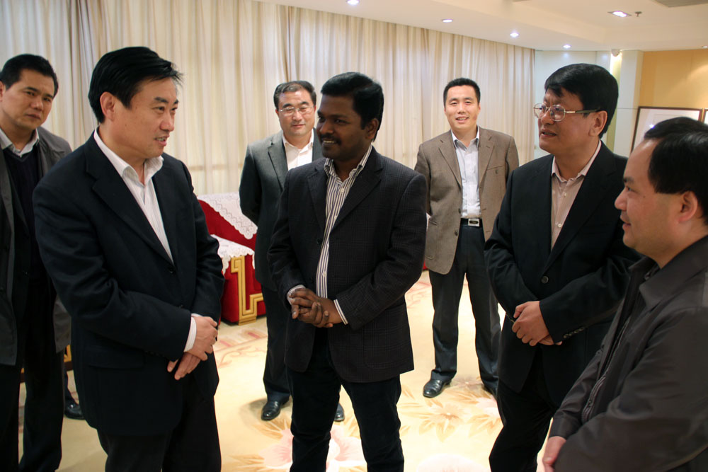 2012年11月7日,臨沂市委常委、常務副市長左沛廷一行在國家級臨沂經濟技術開發區黨工委委員、管委會副主任陳永生陪同下,蒞臨公司檢查指導工作,著重了解公司在現代服務業方面所作出的成績。 張金剛經理首先介紹了公司在與印度SRM集團合作、大力引進印度籍軟件人才及中印軟件產業園建設等情況。隨后,王總向左市長詳細匯報軟件園的施工進度、公司重點研發項目、印度籍專家的工作生活情況等,并對公司未來發展進行展望。 左沛廷副市長在聽取匯報后,對公司在發展過程中的大氣魄、大手筆表示贊賞,對公司積極謀求國際國內間合作的長遠戰略表示肯定。左市長要求公司在工作、生活上要給予印度籍專家充分的關懷,以良好的工作、生活環境留住人才。 左市長表示,市委、市政府將一如既往地大力支持現代服務業的發展,鼓勵拓普網絡公司繼續創新經營模式,提升軟件研發實力,加快軟件園項目建設步伐,以集群化的規模效應,帶動臨沂現代服務業整體發展。 左市長一行到公司視察工作左市長與公司印度籍專家BABU親切交談