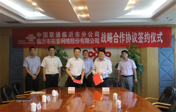 2017年5月24日,臨沂市拓普網絡股份有限公司與中國聯通臨沂分公司“臨沂市智慧教育云平臺”戰略合作協議簽約儀式在臨沂聯通公司會議室隆重舉行。市聯通公司總經理劉志軍、副總經理陳鋒、公司董事長王嵐保、副總經理朱傳博等領導出席。