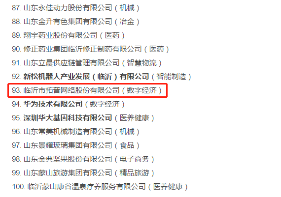 | 我市新舊動(dòng)能轉(zhuǎn)換重點(diǎn)建設(shè)項(xiàng)目和高成長(zhǎng)型企業(yè)名單發(fā)布,臨沂市拓普網(wǎng)絡(luò)股份有限公司榜上有名! |