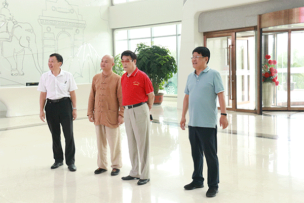 8月6日,著名回族抗日英雄馬本齋司令員之子馬國超將軍來園區為反映精準扶貧題材的電影《金水漁歌》做取景考察,公司董事長王嵐保陪同。