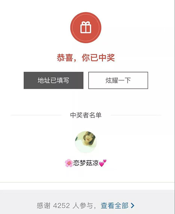 2018年10月16日下午五時許,由臨沂市拓普網(wǎng)絡(luò)股份有限公司舉辦的“尋找沂蒙錦鯉”抽獎活動結(jié)果公布。微信昵稱為戀夢菇?jīng)龅暮筒┦坑脩魧⒖們r值50000元的錦鯉大獎收入囊中,成為本次活動的“沂蒙錦鯉”!
