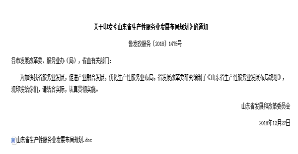 | 國家中印科技國際創新園被列入《山東省生產性服務業發展布局規劃》 |
