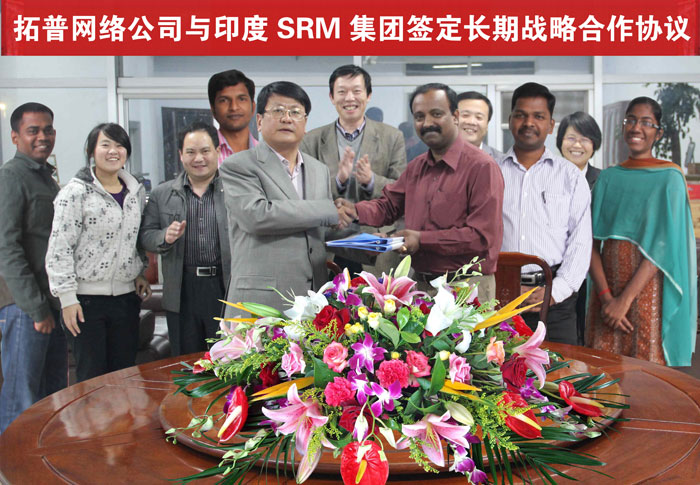 自2011年11月拓普網絡公司與國際知名IT企業印度SRM集團簽署戰略合作協議以來,已陸續引入42位印度籍高級技術人才,這些印度專家的到來,迅速提升了拓普公司的科研實力,同時,又充分利用國外的渠道優勢,進一步增強了企業的成果轉化力。目前,拓普公司與印度SRM大學合作研發的基于物聯網技術的智能健康檢測平臺已具備雛形,最終產品將定格為一款功能密集的智能手表,可測量人體的各項生理指標,還可進行人員定位、自動報警、語音通話,及時了解自身的健康情況和家人的安全情況,具有體積小、功能強、用途廣、價值高等優勢,一經問世,必將取得極大的市場反響。