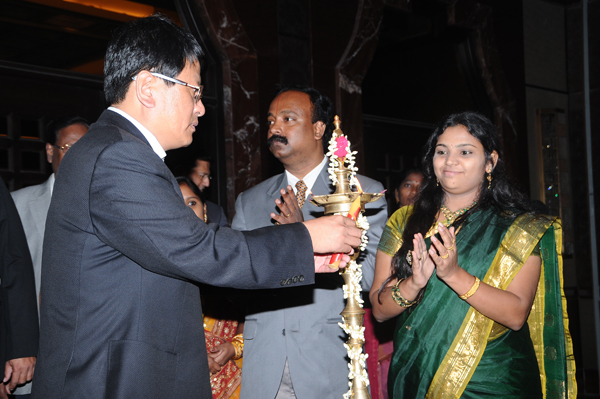 2013年7月2日上午,臨沂經濟技術開發區“中印軟件產業招商會暨中印貿易網開通儀式”在印度金奈圓滿舉行。市人大常委會副主任、開發區黨工委書記徐福田、市經濟和信息化委員會主任王新生、臨沂經濟技術開發區招商局局長朱俊合、臨沂經濟技術開發區城市建設投資有限公司董事長何中華、拓普網絡公司總經理王嵐保、印度SRM集團總裁瑪尼瓦納、SRM Learning Tree公司總經理拉克西米、印度IJK黨總書記杰西蘭出席儀式。