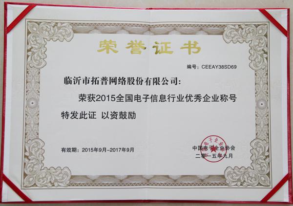 | ?熱烈祝賀公司榮獲“2015全國(guó)電子信息行業(yè)優(yōu)秀企業(yè)”稱號(hào) |