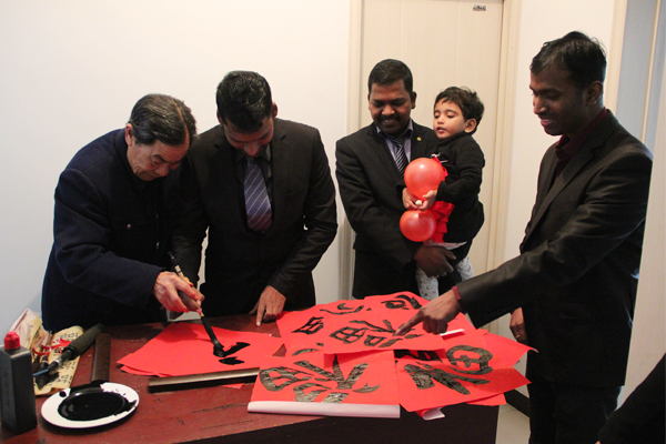 臨近中國農歷新年,公司許多印度員工選擇留在中國,感受農歷年俗的歡樂氣氛。為了讓他們感受不一樣的新年,為了讓公司這些遠離家鄉的印度員工也來感受中國人最傳統、最隆重的新春佳節,公司安排他們的家人也來到了中國,了解中國傳統文化,體驗中國古老節日的喜慶氣氛,讓春節真正團圓,公司中國員工還特地邀請他們一起,包餃子、寫春聯,準備熱熱鬧鬧過大年。
