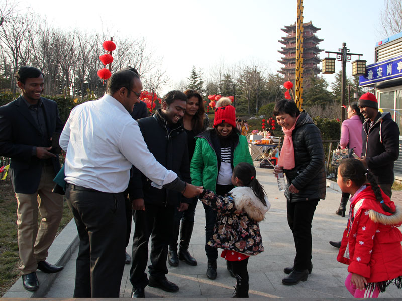 燈如海,人如潮。2016春節(jié)廟會暨元宵燈會在皇山東夷文化園內舉行,堪稱臨沂猴年最大規(guī)模燈會,五彩斑斕的花燈引得市民慕名前來觀賞。2月20日公司組織印度、俄羅斯專家走進燈會現(xiàn)場,欣賞各式花燈,品味其中蘊含的豐厚文化內涵,讓他們感受中國傳統(tǒng)佳節(jié)的魅力。一走進燈會現(xiàn)場,專家們就已經(jīng)迫不及待地投入其中了,與臨沂市民親切交流,與花燈合影,還體驗各種傳統(tǒng)的套圈、打沙包等游戲、玩的不亦樂乎。