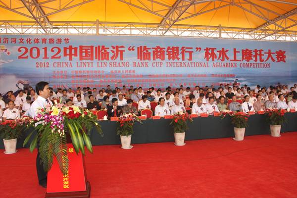 9月21日, 2012中國臨沂“臨商銀行”杯國際水上摩托大賽開幕式在沂河南部F1場館隆重舉行。開幕式上,激情動感的水上摩托和滑水特技表演精彩紛呈,贏得觀眾陣陣歡呼。公司的40余名印度籍專家團隊也趕來為運動員加油助威,成為現場觀眾席上的一大亮點。