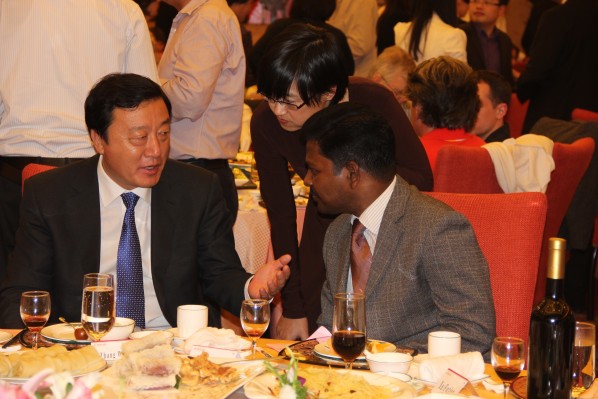 9月28日,臨沂市國慶招待會(huì)暨臨沂國際友人俱樂部成立大會(huì)在陶然居隆重舉行,市委書記、市人大常委會(huì)主任張少軍致辭,市委副書記、市長張務(wù)鋒為獲得“臨沂市榮譽(yù)市民”稱號(hào)的外國友人頒發(fā)證書,張少軍和張務(wù)鋒共同為臨沂國際友人俱樂部揭牌。林國華、李沂明、徐福田、孫豐剛、邊峰、王曉嫚、譚慶功等領(lǐng)導(dǎo)同志出席。 拓普網(wǎng)絡(luò)公司印度籍專家Babu先生榮膺“臨沂市榮譽(yù)市民”,這體現(xiàn)了拓普公司崇尚知識(shí)、尊重人才的做法,贏得了市委、市政府的肯定。 拓普網(wǎng)絡(luò)公司的印度籍專家以一場原汁原味的印巴風(fēng)情舞蹈為本次宴會(huì)拉開帷幕,贏得陣陣喝彩,各國友人也紛紛以自己的方式為本次活動(dòng)獻(xiàn)上精彩演出。 臨沂市拓普網(wǎng)絡(luò)有限公司公司歷來注重人才引進(jìn),大力實(shí)施“人才興企”戰(zhàn)略,去年至今,陸續(xù)從印度引入近40位高端人才,這在全省軟件行業(yè)當(dāng)中都是絕無僅有的,彰顯了公司敢為人先的魄力,以及走向國際化的決心。印度籍專家團(tuán)隊(duì)的到來,不僅增強(qiáng)了公司內(nèi)部的研發(fā)實(shí)力,也提升了企業(yè)的外在形象。