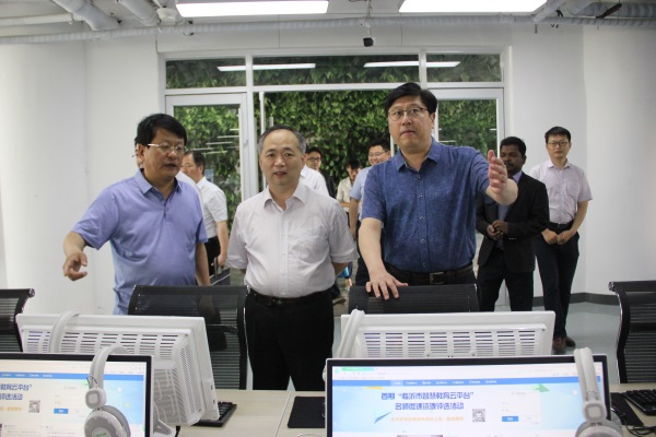 5月18日,省紀委駐省住房城鄉建設廳紀檢組組長馬國柱一行蒞臨國家中印科技國際創新園調研工作。市政府黨組成員,開發區黨工委書記、管委會主任陳一兵等領導陪同。 馬國柱一行實地參觀考察了高科技互動體驗展廳、微課錄播室、微機培訓室、臨沂智慧教育創客活動中心、VR體驗中心等地,認真聽取了董事長王嵐保關于公司發展情況、臨沂市智慧教育云平臺的詳細介紹,對云平臺取得的創新成果給予了充分肯定和高度認可。
