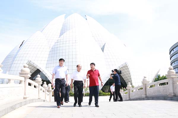 6月29日上午,臨沂大學黨委書記李喆一行到國家中印科技國際創新園參觀,市政府黨組成員、開發區黨工委書、管委會主任陳一兵陪同。