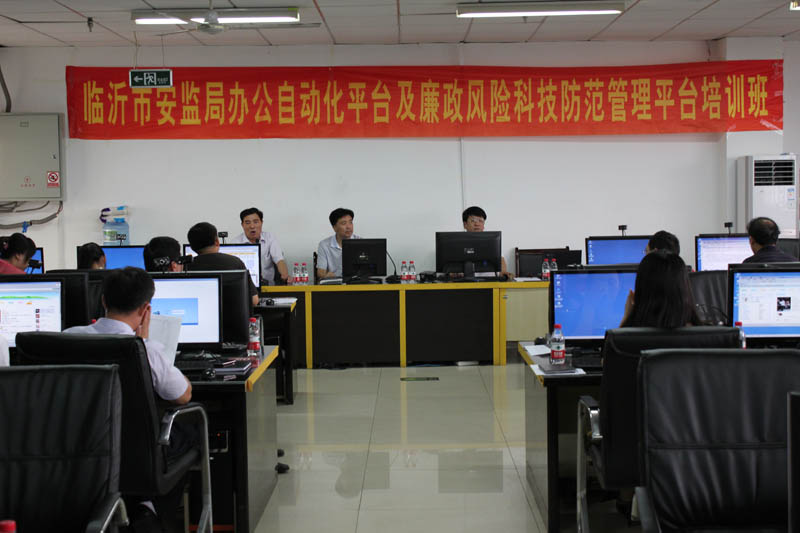 2010年8月12日上午,由我公司組織的臨沂市安監局辦公自動化平臺及廉政風險科技防范管理平臺培訓班在大學城活動中心成功舉辦。安監局黨組書記、局長譚慶功帶領全體安監局工作人員參加了此次培訓,并在會上進行了講話。 我公司根據臨沂市安監局的需求,自主研發的《臨沂市安監局辦公自動化平臺》,經過公司全體研發人員的努力,已經成功在臨沂市安監局推廣應用,并得到了臨沂市紀委,市安監局的一致好評。為了更合理、更科學地掌握軟件系統的特性,使之真正達到高效、方便、科學的辦公,特舉辦了此次培訓班。培訓內容主要為《臨沂市安監局辦公自動化平臺》軟件的實際操作、安裝及應用。安監局領導及全體工作人員,對管理平臺系統進行了上機實驗,并對我公司研發的管理平臺給予高度評價。
