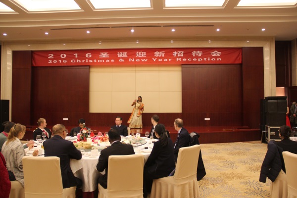 2016年12月23日,臨沂市政府2016年圣誕迎新招待會在藍海酒店舉行,公司印度、烏克蘭、俄羅斯等國的外籍專家受邀參加。 招待會上,與會領導與海外高層次人才歡聚一堂,暢敘友情,共謀發(fā)展。公司副總經(jīng)理巴布代表外國專家講話,印度專家卡帕娜奉獻了精美絕倫的歌舞表演。