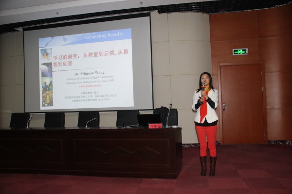 會議現場 王敏娟教授的報告,通過“學習的演變、參與式學習、教學設計模型”等內容的精彩講授,全面深刻的闡釋了課堂教學、電子學習、移動學習、云學習等不同教學技術帶來的教與學方式的變革。對中美教學差異、美國教育資源開發等老師們提出的問題,王教授和老師們做了深刻探討。通過本次講座,提升了與會教師的信息化教學能力,推動教育信息化與課堂教學深度融合。 而由公司建設運營的臨沂市智慧教育云平臺正是順應時代發展要求,在促進臨沂市的教育信息化、均衡化發展具有重要意義。該平臺是以新一代信息技術為支撐的綜合教育云應用平臺。通過智慧教育云平臺,實現了優質教學資源共享,聚焦了教學、學習革新范式,形成了體系完整、內容海量、模式清晰的智慧教育體系。智慧教育云平臺在各縣區推廣后取得了良好的效果,促進了教育理念的轉變、教育方法的更新、科研能力的增強,進一步推動了教育品質的全面提升。 王敏娟教授簡介: 王敏娟,美國圣地亞哥州立大學,教育技術與傳媒系教授、密蘇里大學信息科學與教育技術博士。加州州立大學總校長辦公室,大型開放式資源(MERLOT)項目管理人;上海外國語大學特聘教授(東方學者)。王敏娟教授一直開展著前沿的教學和研發活動,從網絡教學法,到移動學習,到智慧學習和云學習的平臺建構。在教育技術領域的十五年中,她在各類國際檢索期刊、書籍和國際會議上發表論文80余篇(95%為英語文章)。2011年開始,她被美國教育界評為最有影響的作者之一,并被公認為移動和混合式學習領域的專家。曾應邀在12個大型國際會議上主題或者嘉賓演講。在過去的6年里,她領導和參加了7個大型研發項目。這些項目的資助來自美國國家科學基金會,美國教育部,中國教育部和科技部等,總額高達500萬美金。王敏娟教授也擔任著4個檢索期刊的總編,編輯或編委,指導了26名碩士,博士和博士后研究人員。她從教13年,教學足跡遍布世界各地。她開設的課程具有前沿性,必要性,實用性,符合學生們目前的職業需求并且預測著未來的趨勢。她出版的兩本暢銷勵志書籍,影響了世界各地的青年學子。